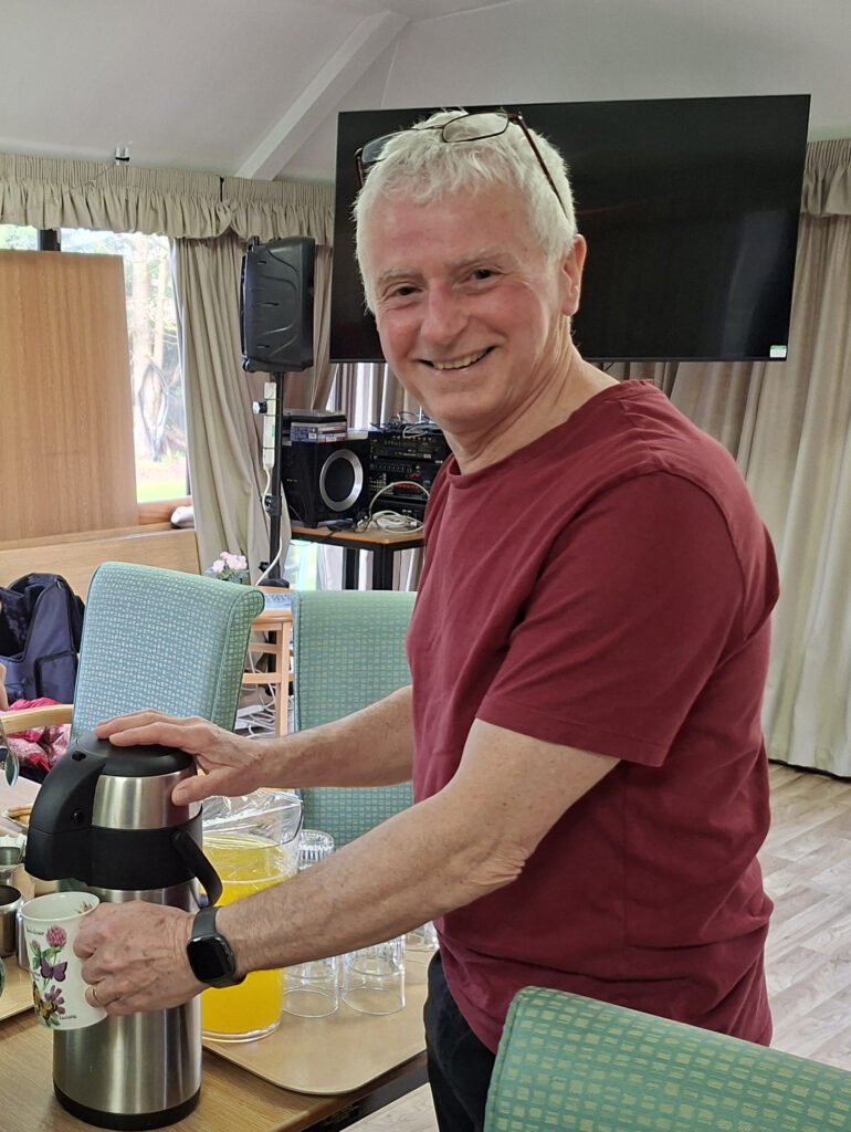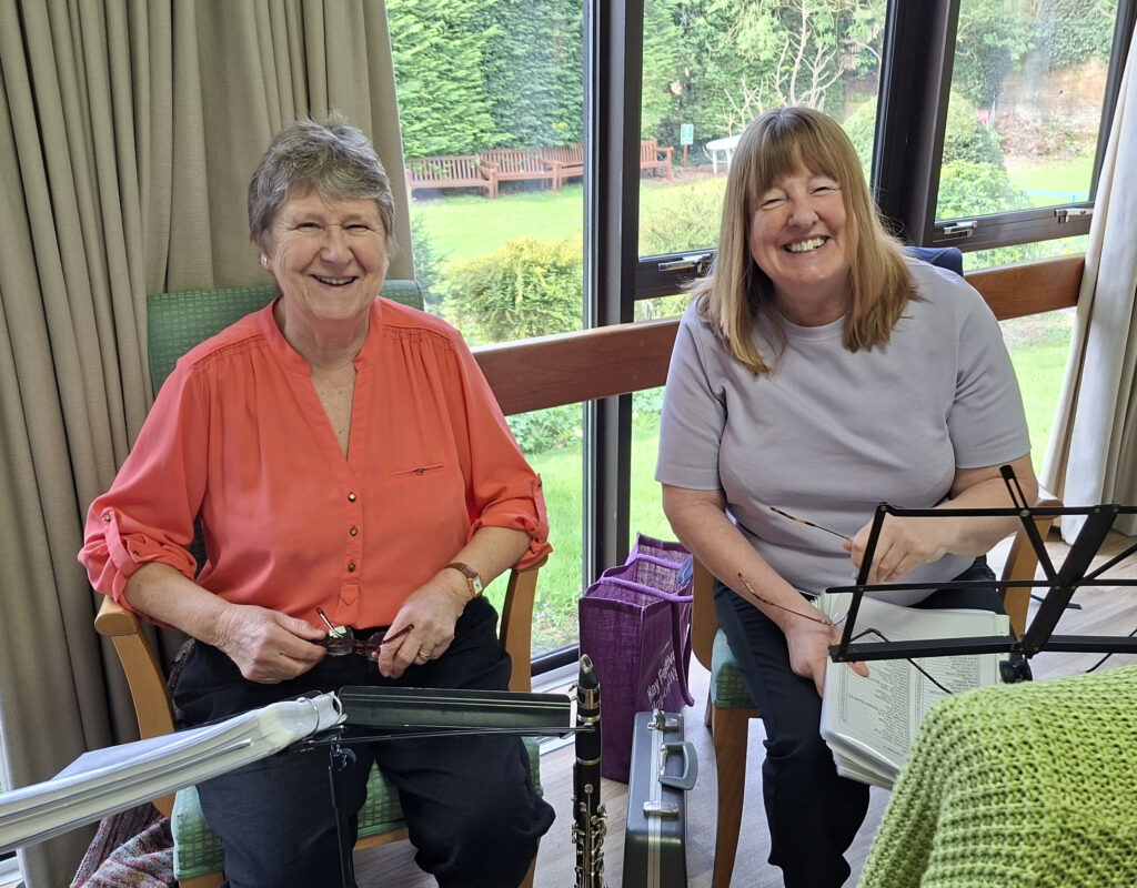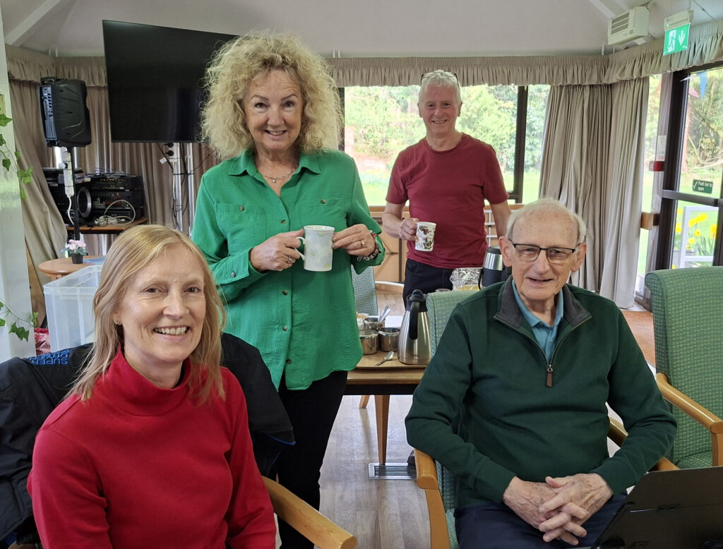 We love it when we’re invited back! Here we are trying to look casual during a break at this lovely Care Home. Thanks for the coffee and cakes!